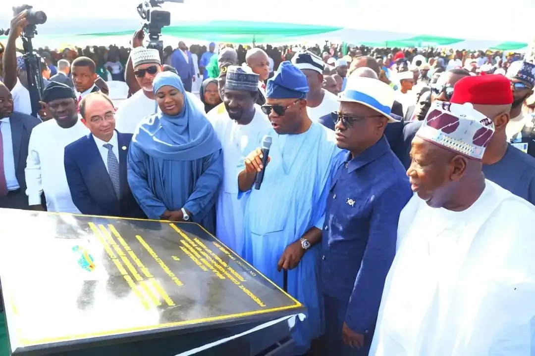 尼日利亞總統(tǒng)提努布為我司承建的阿布賈大供水項目竣工儀式剪彩,現(xiàn)場以中文致謝!